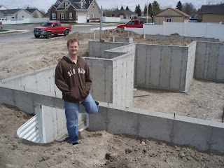 We now have basement walls. Once the cement guys finally got to our project, they went pretty fast. Since then, the plumber has been working to install the pipes and such that go under the basement floor. He should be done soon, and then they'll pour the basement and garage floors.